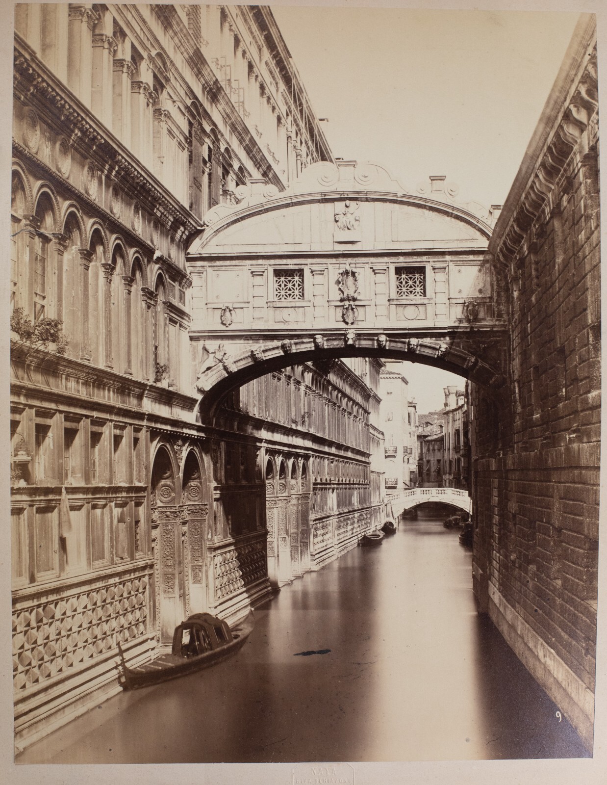 TIRAGE PHOTO ALBUMINE, 1880, CARLO NAYA TAMPON SEC ITALIE VENISE PONT DES SOUPIRS 27X35cm