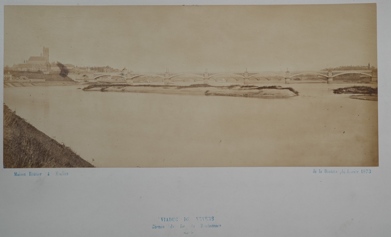 Albumine France Viaduc de Nevers 16X37cm 1870