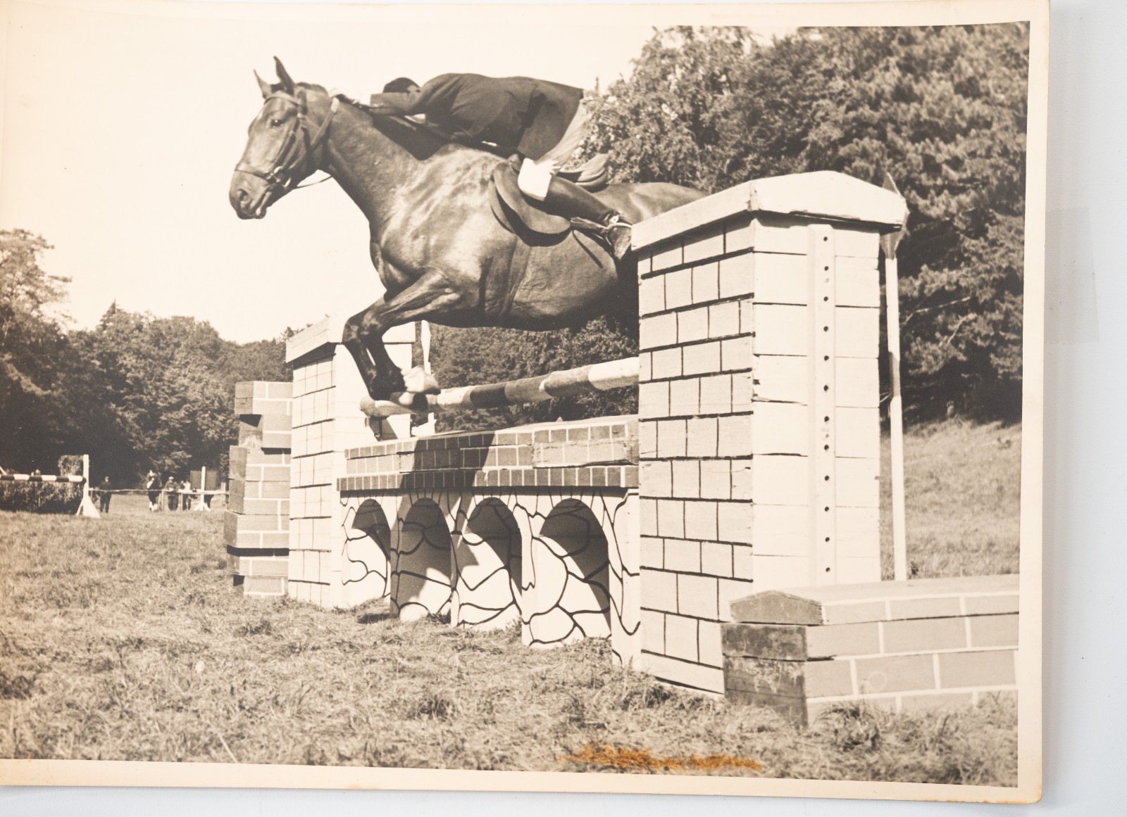 Argentique France Equitation cheval saut d’obstacles 18X24cm 1950