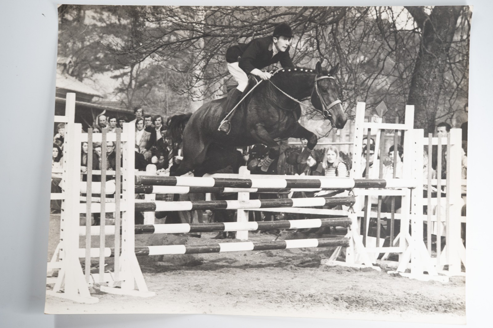 Argentique France Equitation cheval saut d’obstacles 30X40cm 1970