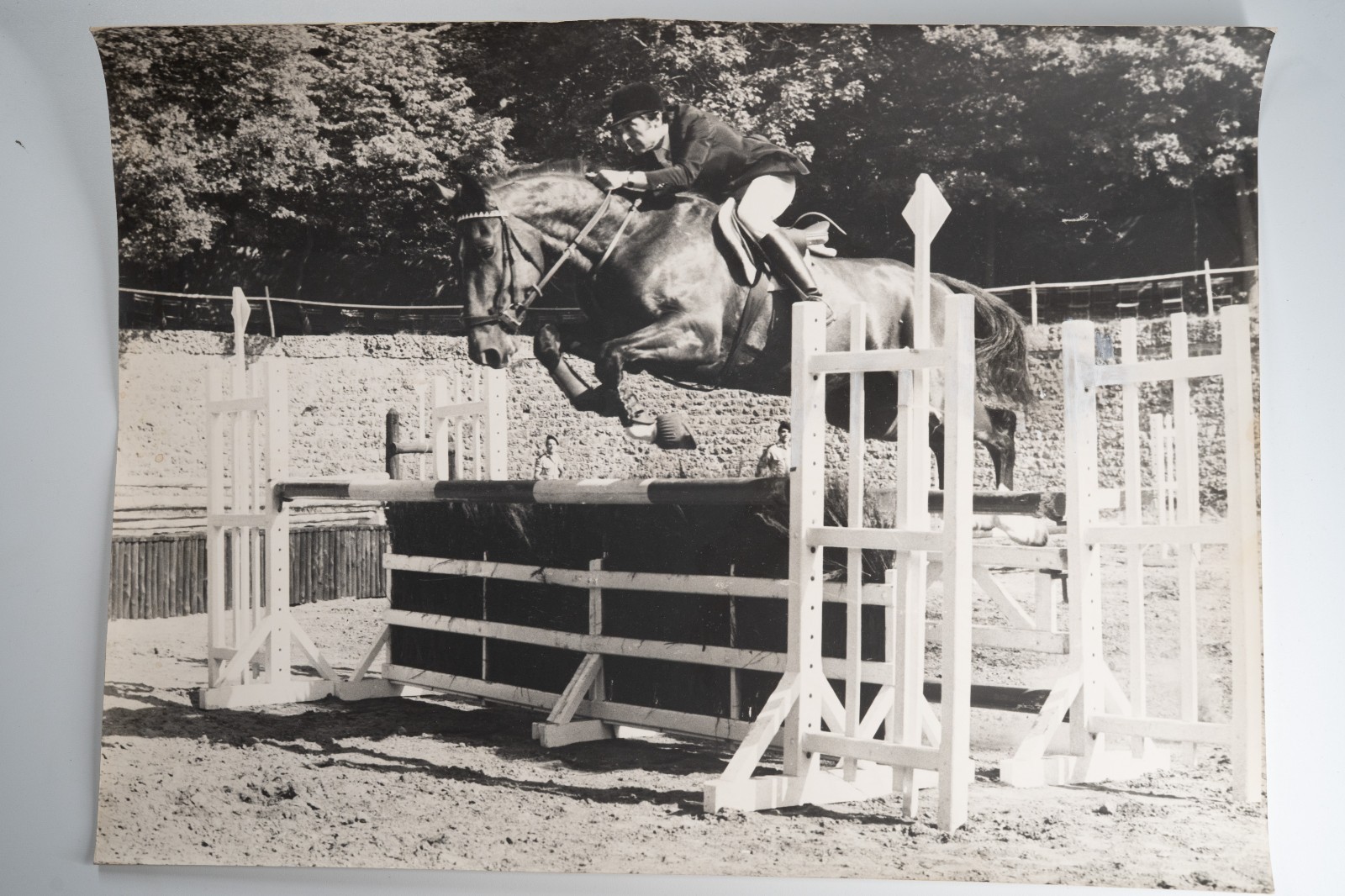 Argentique France Equitation cheval saut d’obstacles 30X40cm 1970