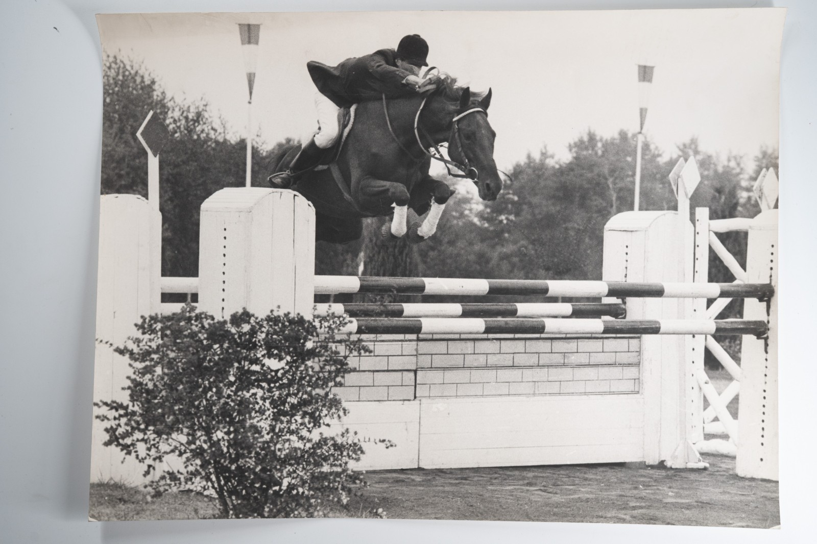 Argentique France Equitation cheval saut d’obstacles 30X40cm 1970