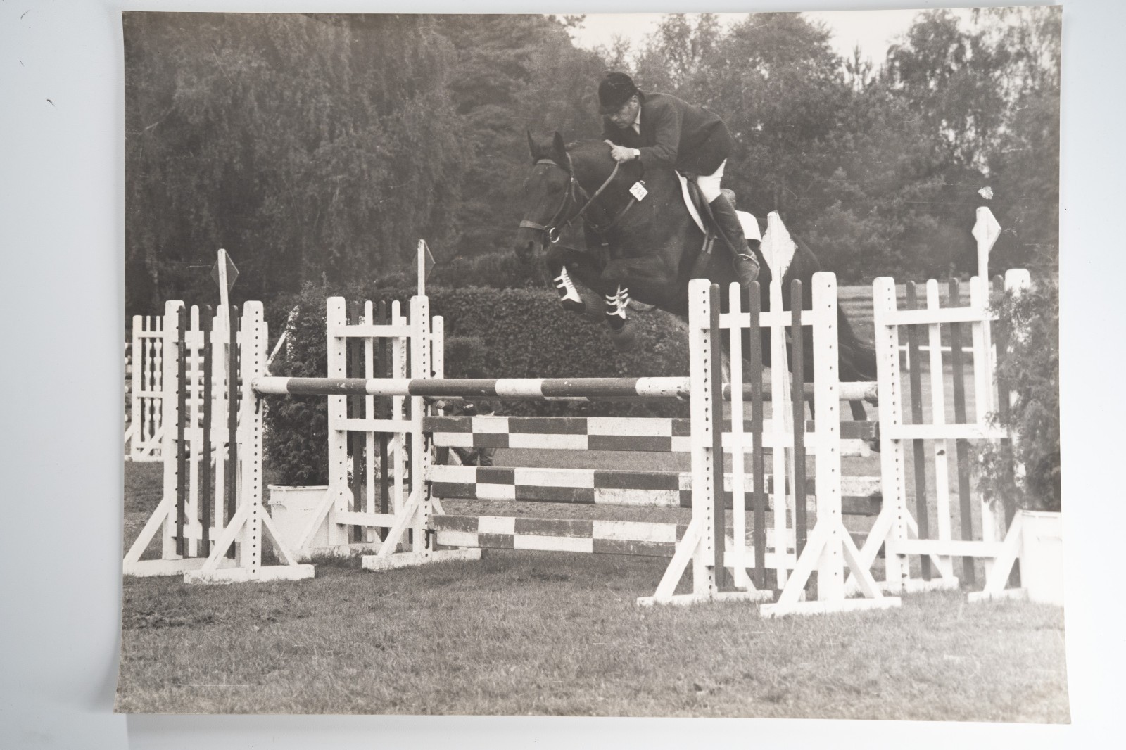 Argentique France Equitation cheval saut d’obstacles 30X40cm 1970