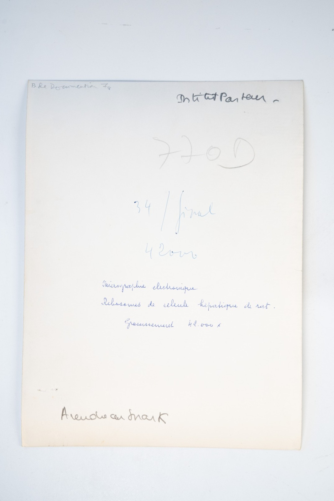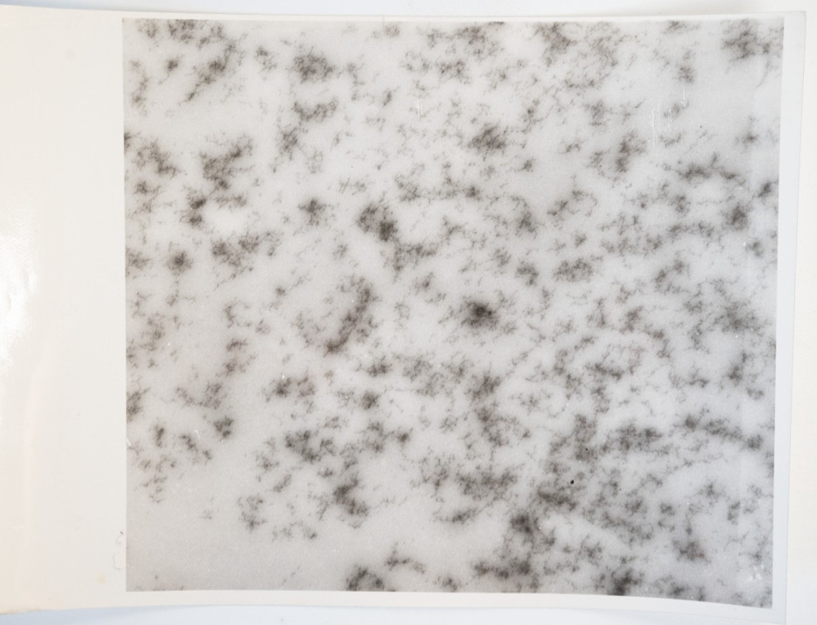 “Institut Pasteur. Micrographie électronique : Ribosomes de cellule hépatique de rat. Grossissement 42.000 x”