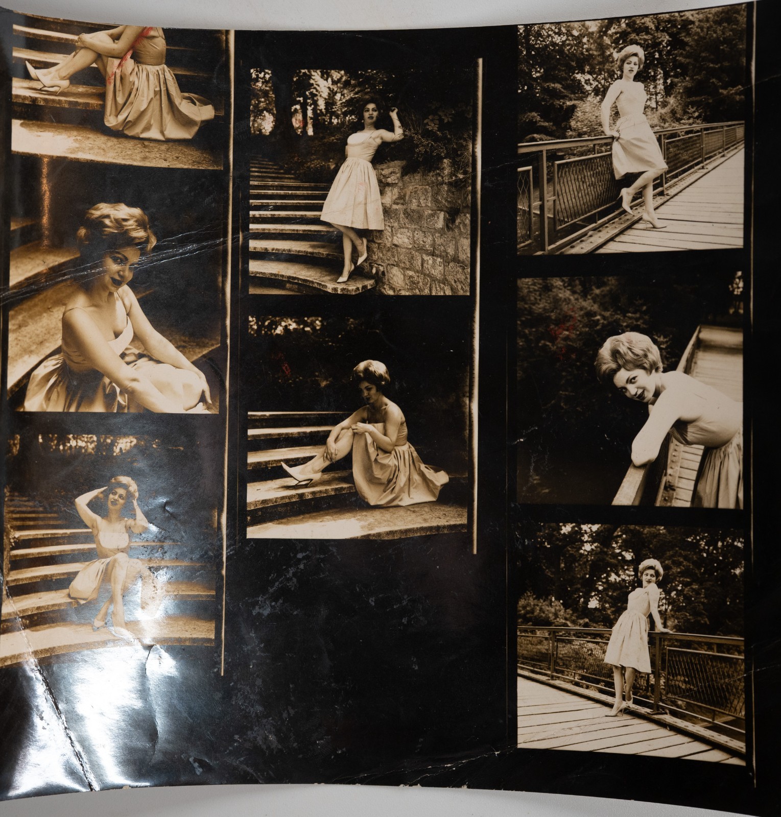 Argentique France pin-up planche contact snap shot 6X6cm par vue 1960