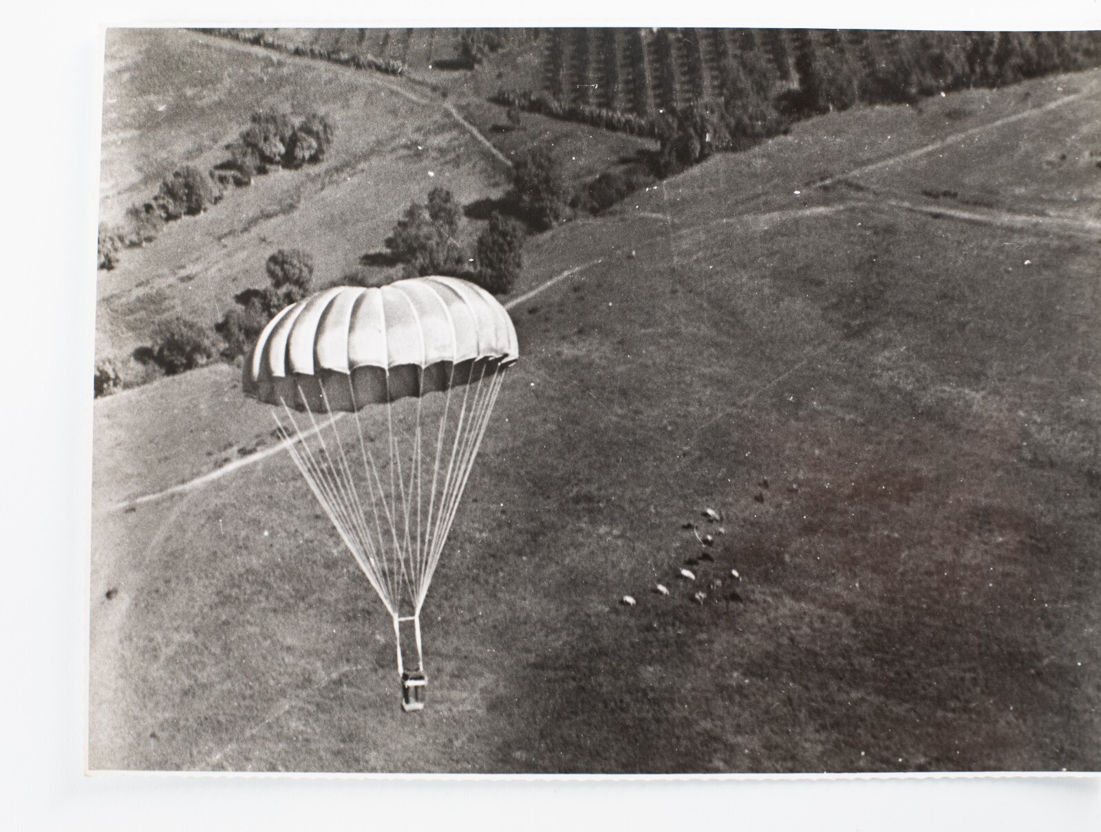 TIRAGE PHOTO ARGENTIQUE, TAMPON, Fançois Pagès 1960 parachute militaire 17X23cm
