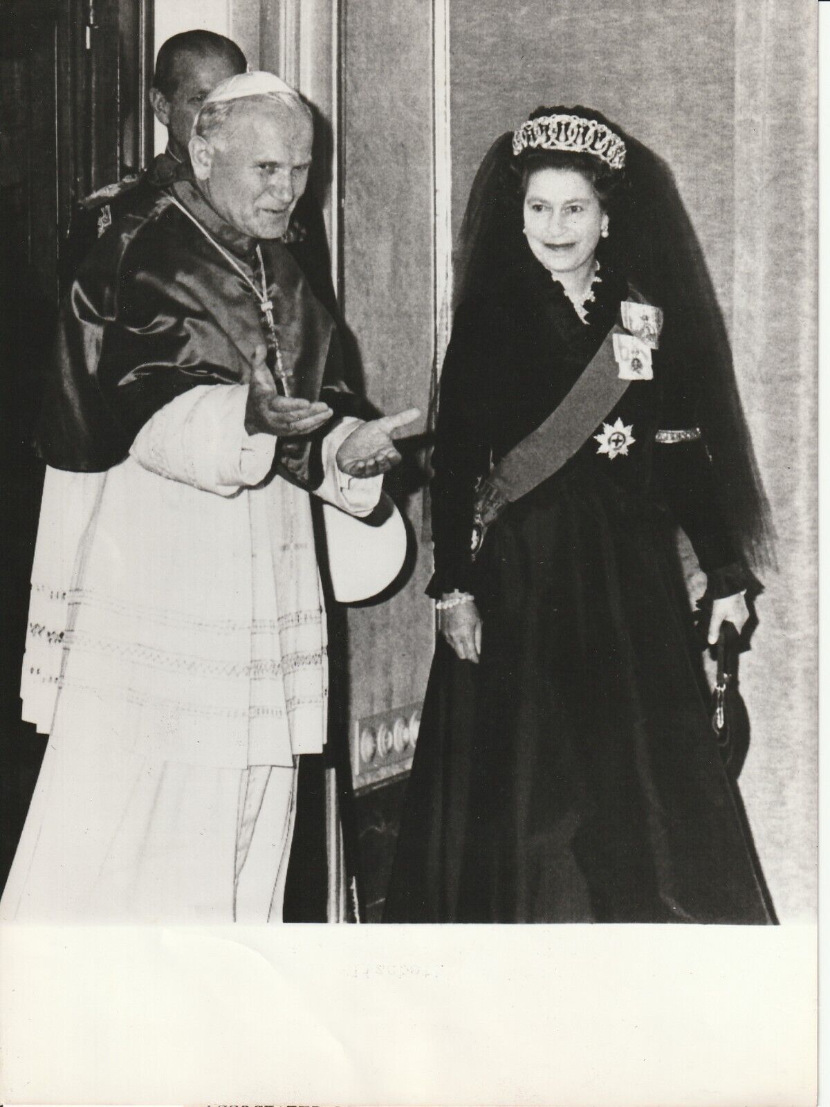 ELIZABETH II REINE D’ANGLETERRE 18X24cm NOIR ET BLANC. ELIZABETH II ET JEAN PAUL II 1980. TIRAGE PHOTO DE PRESSE ARGENTIQUE 1970. Vous trouverez ici des appareils photos argentique utilisable ou de collection, des photos d’époque et récentes.